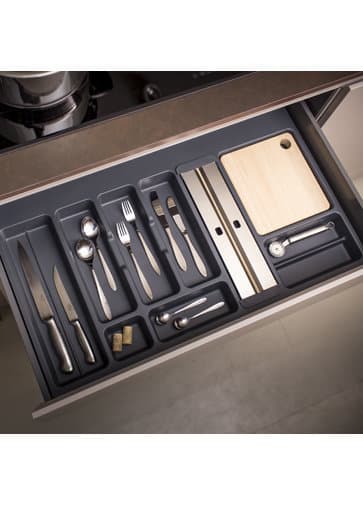 Las bandejas de cubiertos de la línea Classic se caracterizan por sus formas minimalistas y cuadradas, ideales para cocinas modernas y vanguardistas.