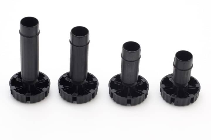 * Adaptador base para fijación con tirafondos, o bien con 4 tacos de diámetro 10 mm.