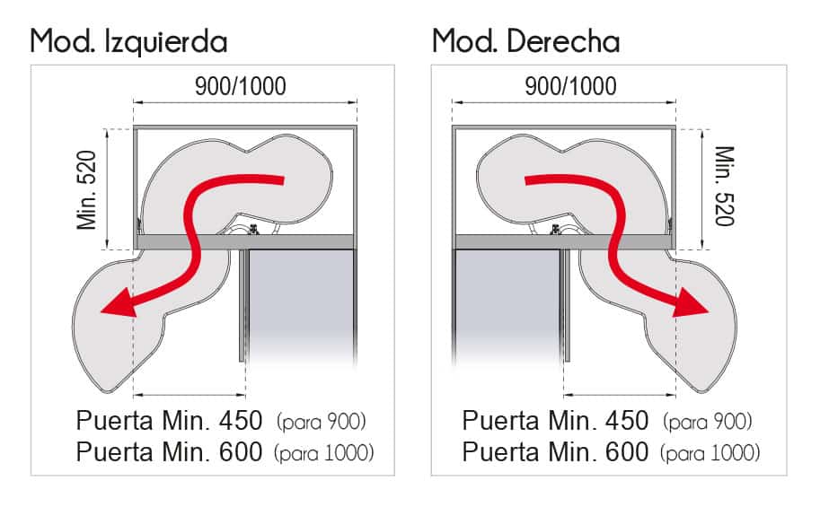 • Para rinconeros de 900/Puerta 45 y de 1000/Puerta de 60