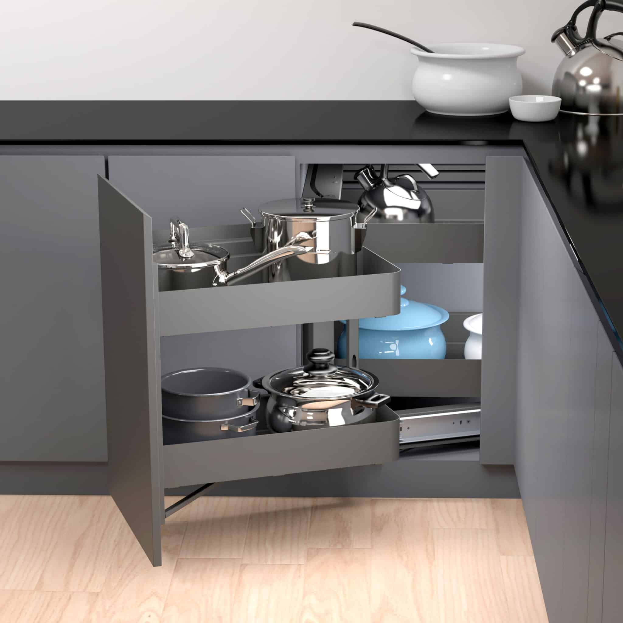 • Bandejas metálicas de pletina laminada con base de melamina extraíbles con amortiguación