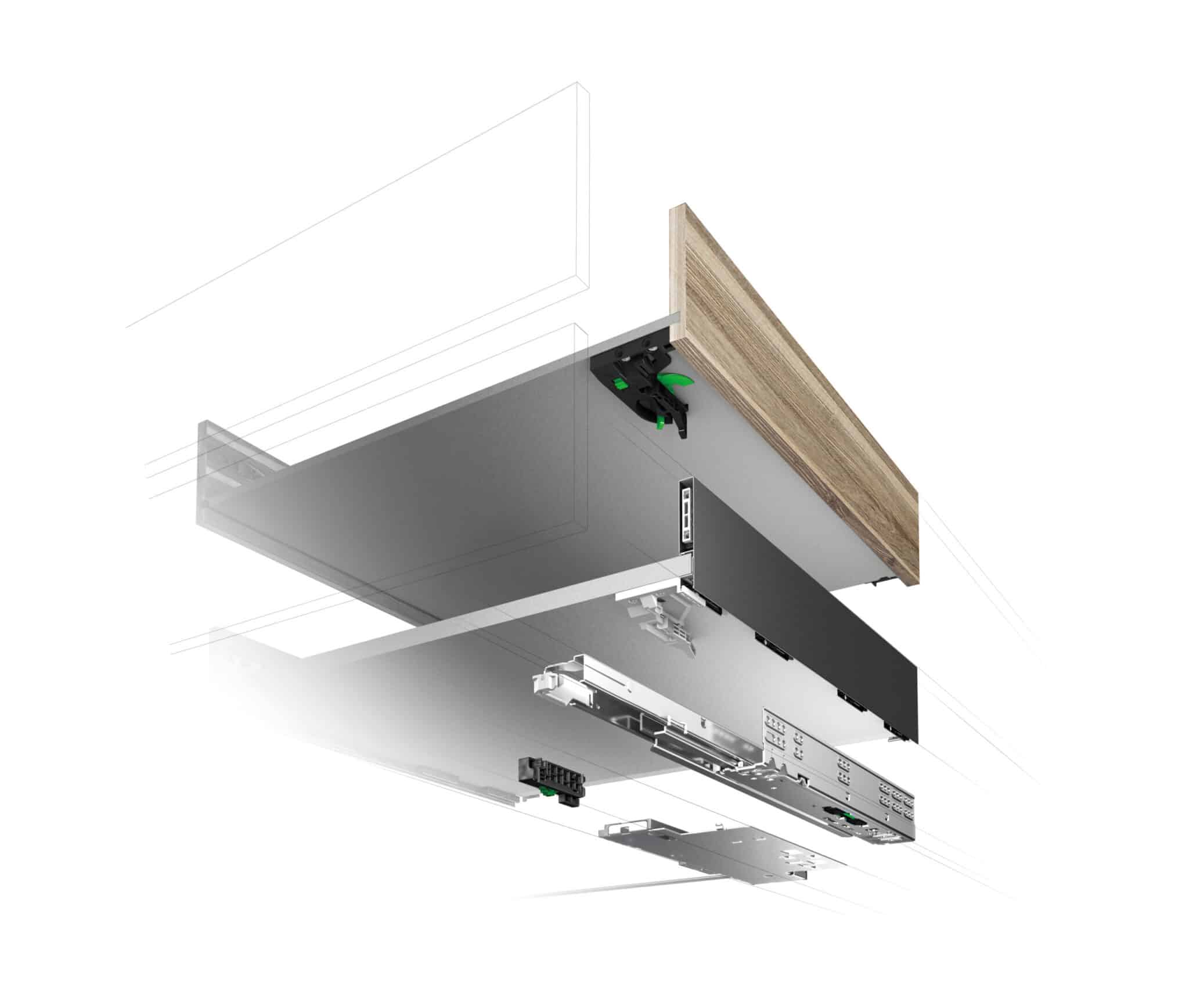 • Con sus estrechos laterales de 13 milímetros, el sistema de cajones cubista garantiza un diseño superior del espacio de almacenamiento.