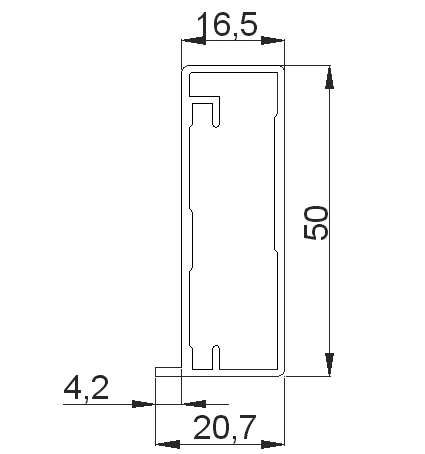 VITRINA ALUMINIO 50*20 pestaña 4.5mm