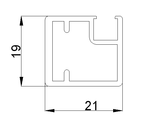 • Perfil aluminio de vitrina de 21 x 19mm recta en acabado negro y plata mate con burlete. Otros acabados: consultar.