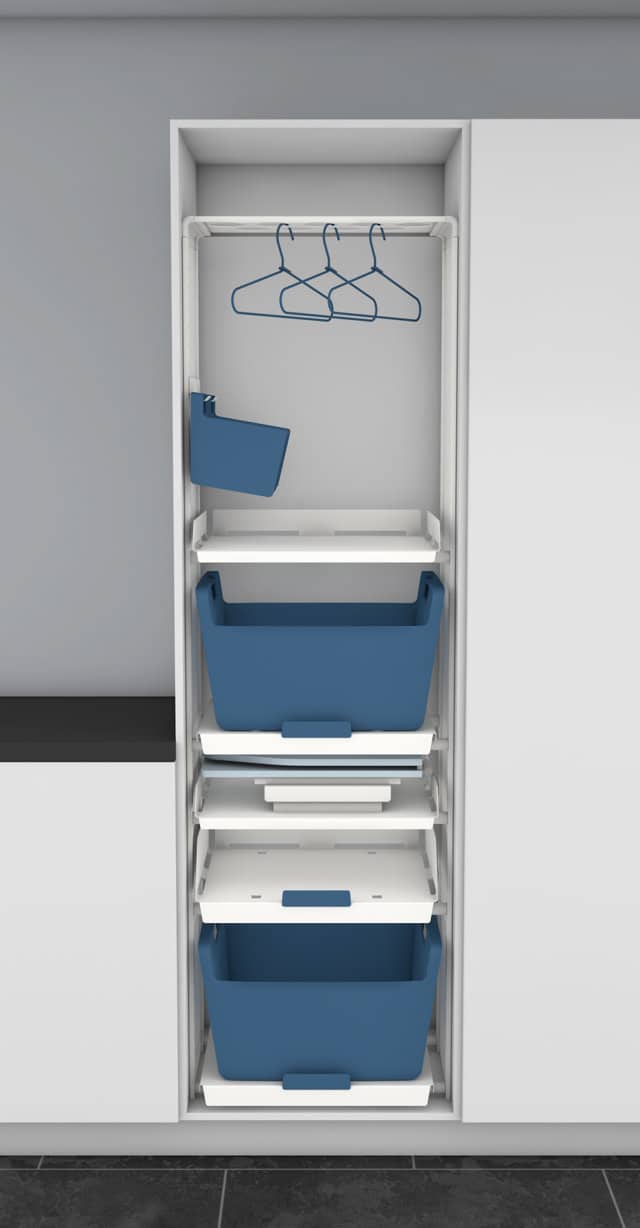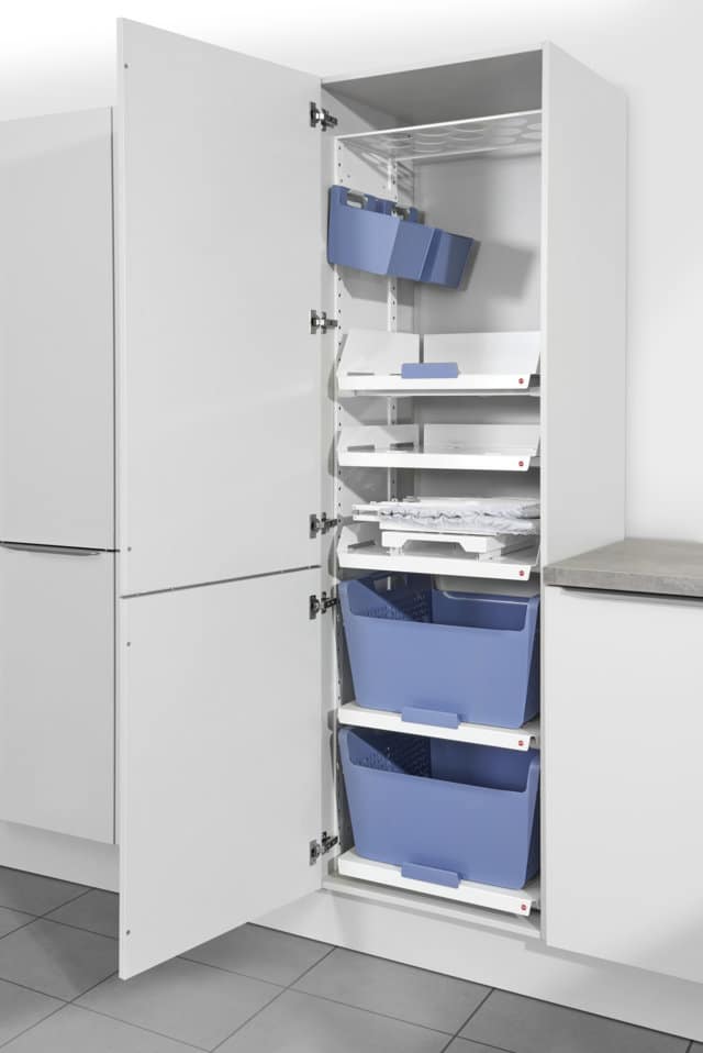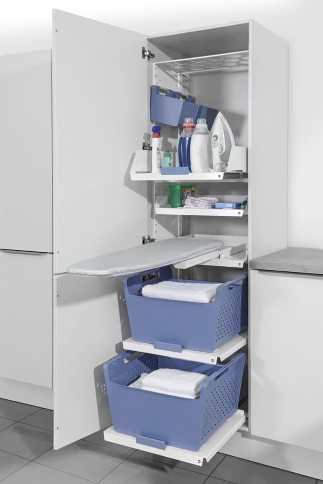 dispongamos. Estantes, bandejas extraibles, zona de planchado, etc.